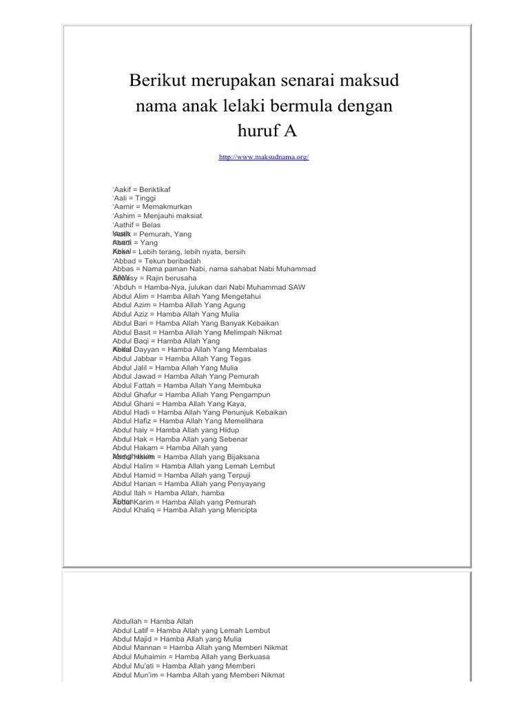 Maksud Nama Anak Lelaki Bermula Huruf A Pdf